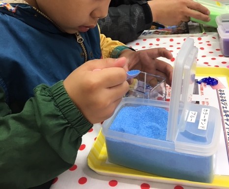 11色ある砂で自分のイメージのキャンドルを作っていきます!
