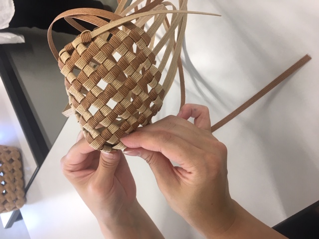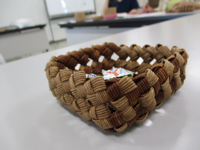 紙ばんどを使って石畳編みという手法に挑戦しました!