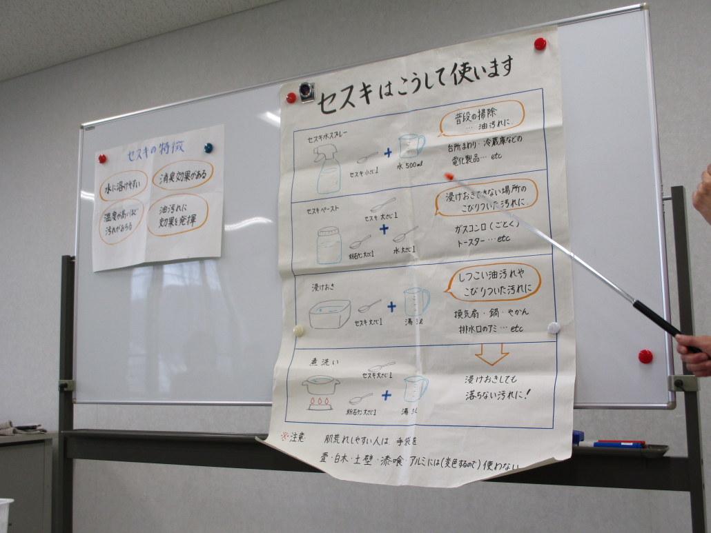 続いてはお掃除です!「セスキ」を使ったお掃除を教えていただきました(^.^)