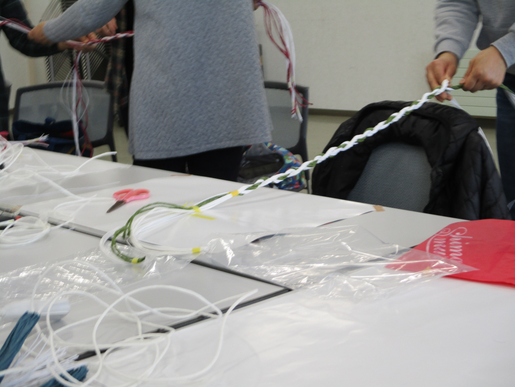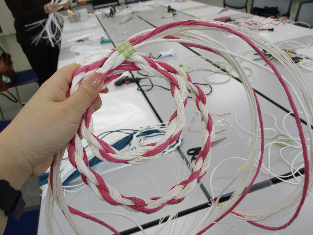 束ねたひもを編んでいきます(^.^)