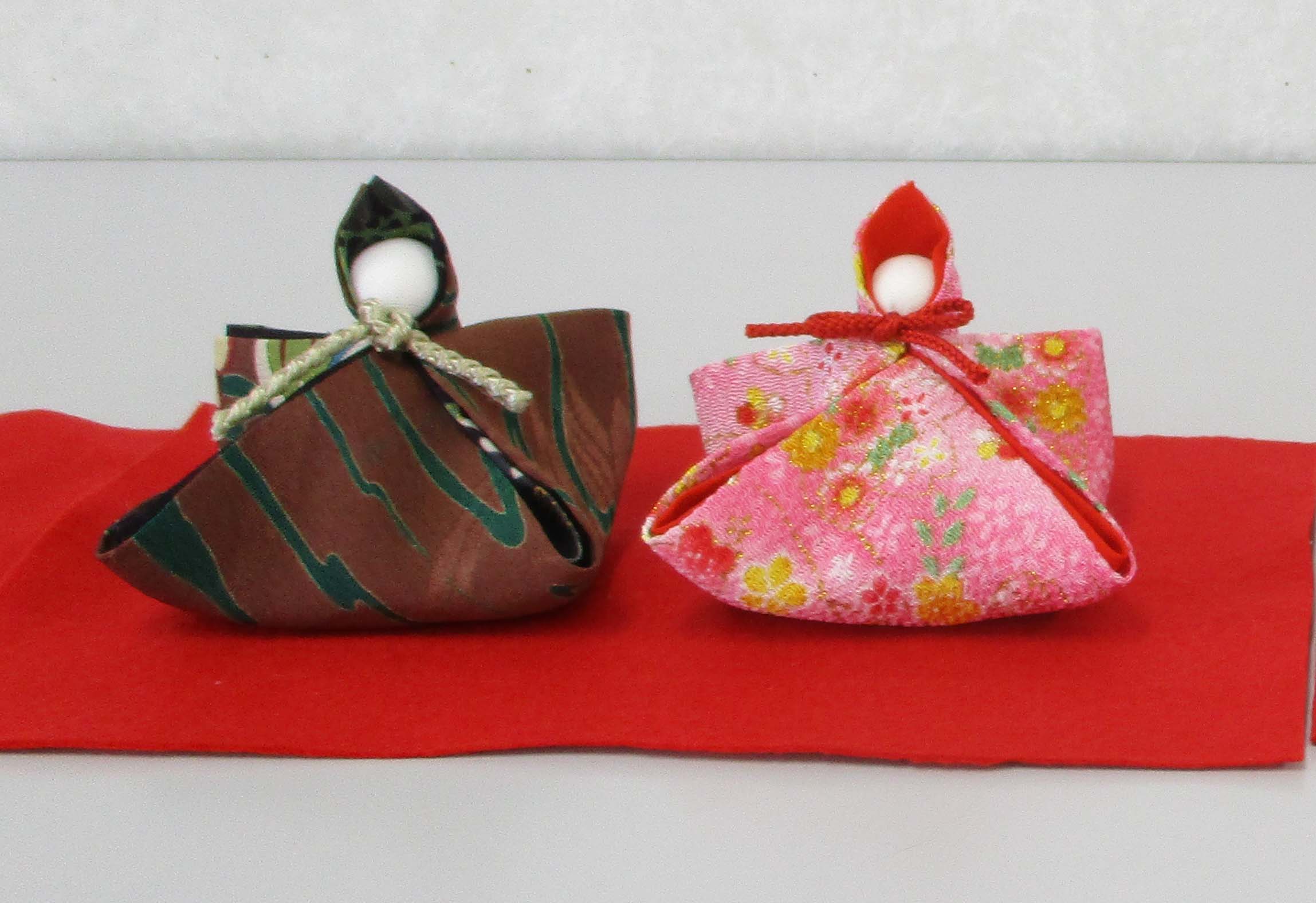 端布を使い裁縫が苦手な方でも手のひらにのる小さなおひな様が作れます♪